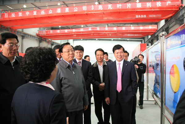 2010年5月12日,酒泉國家風(fēng)電裝備高新技術(shù)產(chǎn)業(yè)化基地正式掛牌,標志著(zhù)甘肅新能源基地建設進(jìn)入了一個(gè)新的階段。甘肅省委書(shū)記、省人大常委會(huì )主任陸浩出席掛牌儀式并為基地揭牌,省委副書(shū)記、省長(cháng)徐守盛也參加了儀式。隨后陸浩、徐守盛在中國復合材料集團有限公司董事長(cháng)兼總經(jīng)理張定金的陪同下視察了中復連眾酒泉葉片基地。