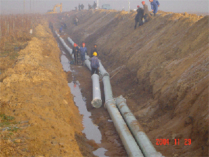 山東海陽(yáng)核電廠(chǎng)施工用水管道一期工程總長(cháng)8公里,為2條DN350的玻璃鋼管道平行鋪設,整個(gè)工程共使用了中復連眾的玻璃鋼管道約16000米,管道壓力等級為1.0Mpa,產(chǎn)品執行JC552-94標準, 此項目由中復連眾自行安裝,在已經(jīng)進(jìn)行過(guò)的三個(gè)水壓試驗段的水壓試驗均一次性打壓通過(guò),受到了山東核電有限公司和核工業(yè)四達建設監理公司的高度評價(jià).